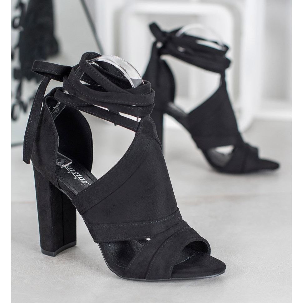 Szczegóły: Seastar Wiązane Sandałki Na Słupku czarne