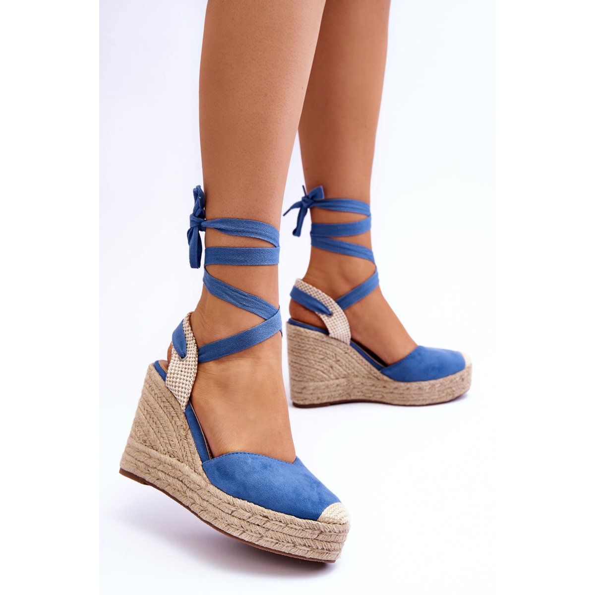 **Wiązane Sandały Na Wysokim Koturnie Niebieskie Lendy**