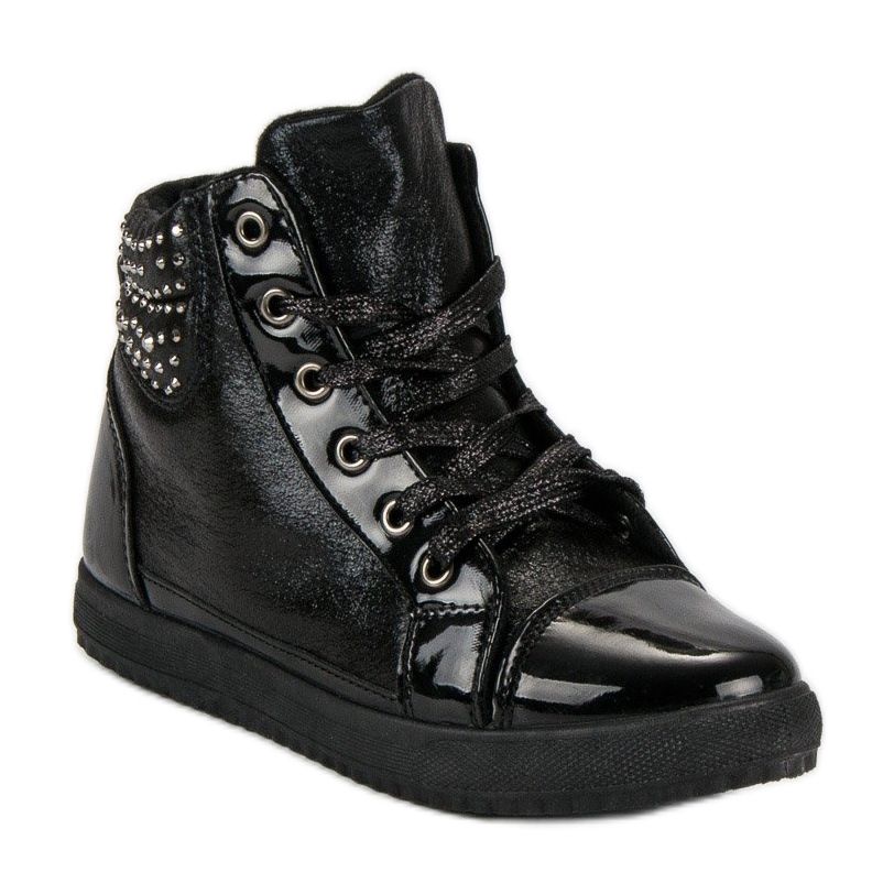 Odkryj nowy wymiar wygody i stylu z naszymi czarnymi wiązanymi sneakersami, które są absolutnym must-have w każdej damskiej garderobie. Wykonane z wysokiej jakości ekologicznej skóry oraz materiału tekstylnego, te buty łączą w sobie sportowy luz z rockowym wdziękiem. Ich unikalny design, wzbogacony o błyszczące kryształki oraz efektowne ćwieki, sprawia, że są idealnym wyborem zarówno na co dzień, jak i na wieczorne wyjścia.