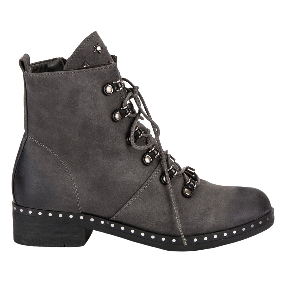 Wykonane z wysokiej jakości materiałów, workery charakteryzują się klasycznym krojem oraz subtelnym szarym kolorem, co pozwala na łatwe łączenie ich z różnorodnymi stylizacjami. Dzięki przemyślanej konstrukcji z suwakami i sznurowadłami, możesz dostosować szerokość cholewki do swoich potrzeb, co zapewnia idealne dopasowanie do nogi.