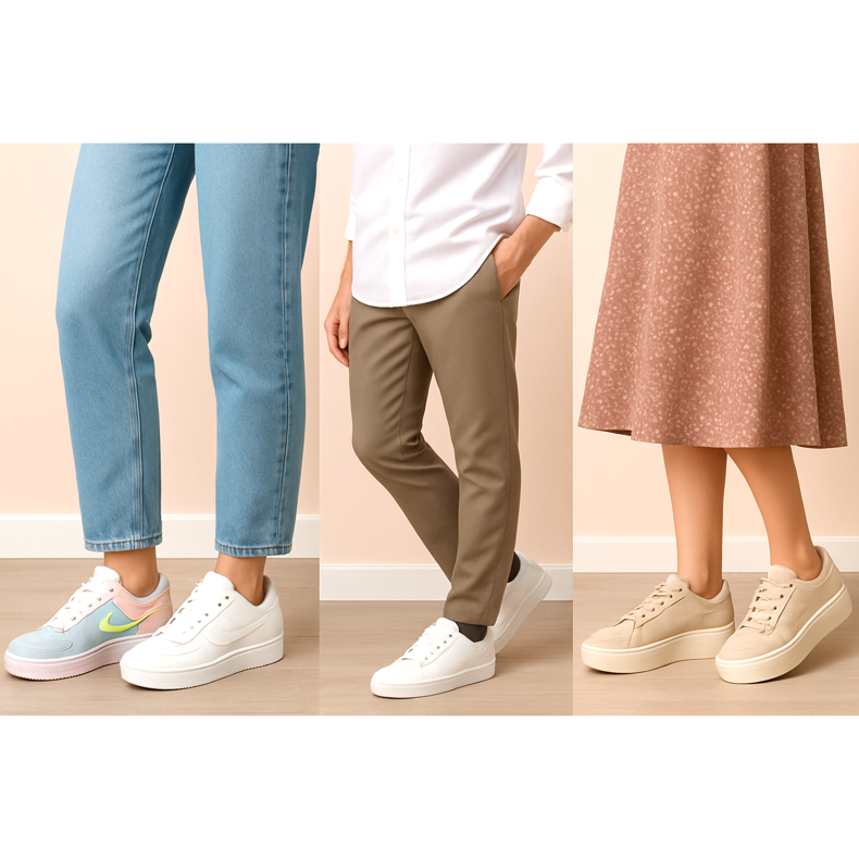 W przeciwieństwie do chunky trends, równie popularne są minimalistyczne sneakersy o czystych liniach i prostej formie. Jednolite kolory, subtle branding i klasyczne proporcje to cechy charakterystyczne tego trendu. Białe, szare i nude sneakersy w stylu minimal perfect pasują do każdej stylizacji, od casualowych po business casual. To inwestycja w ponadczasowy styl, który nigdy nie wyjdzie z mody.