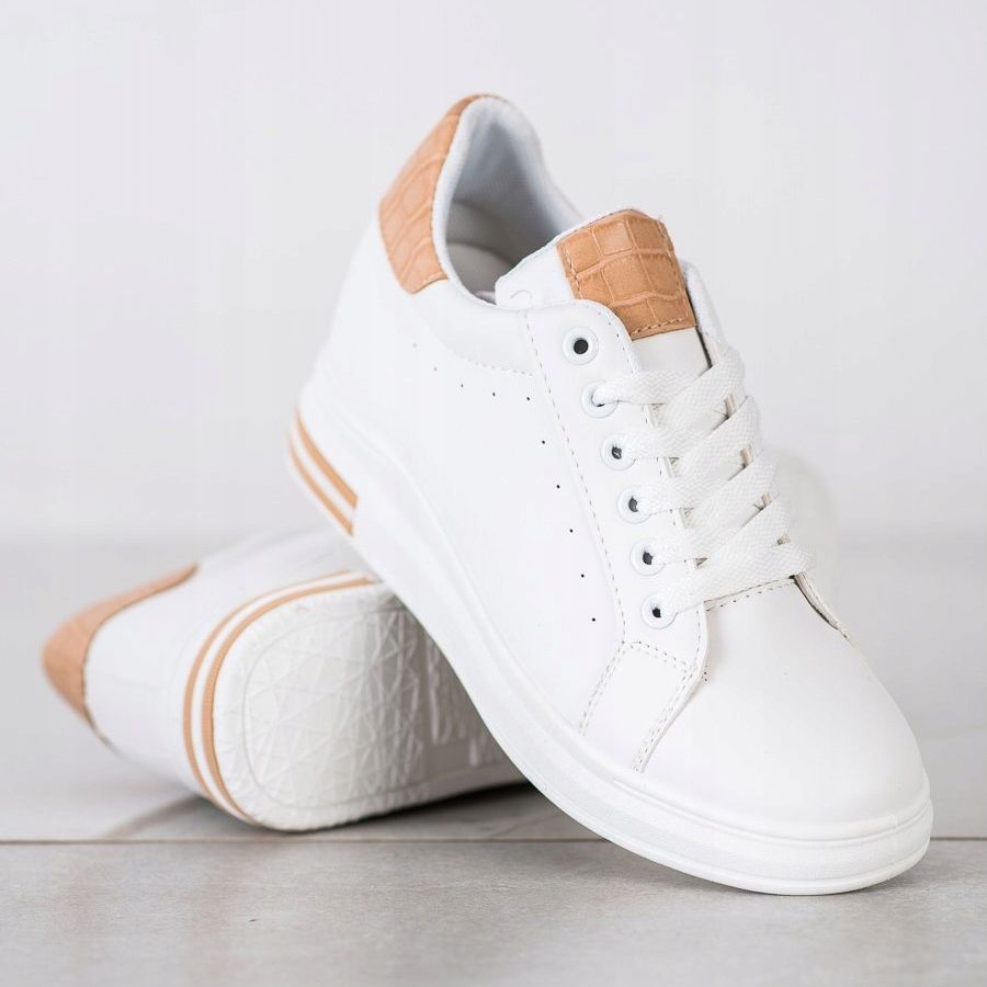 **Ideal Shoes Wiosenne Sneakersy Na Koturnie – białe**