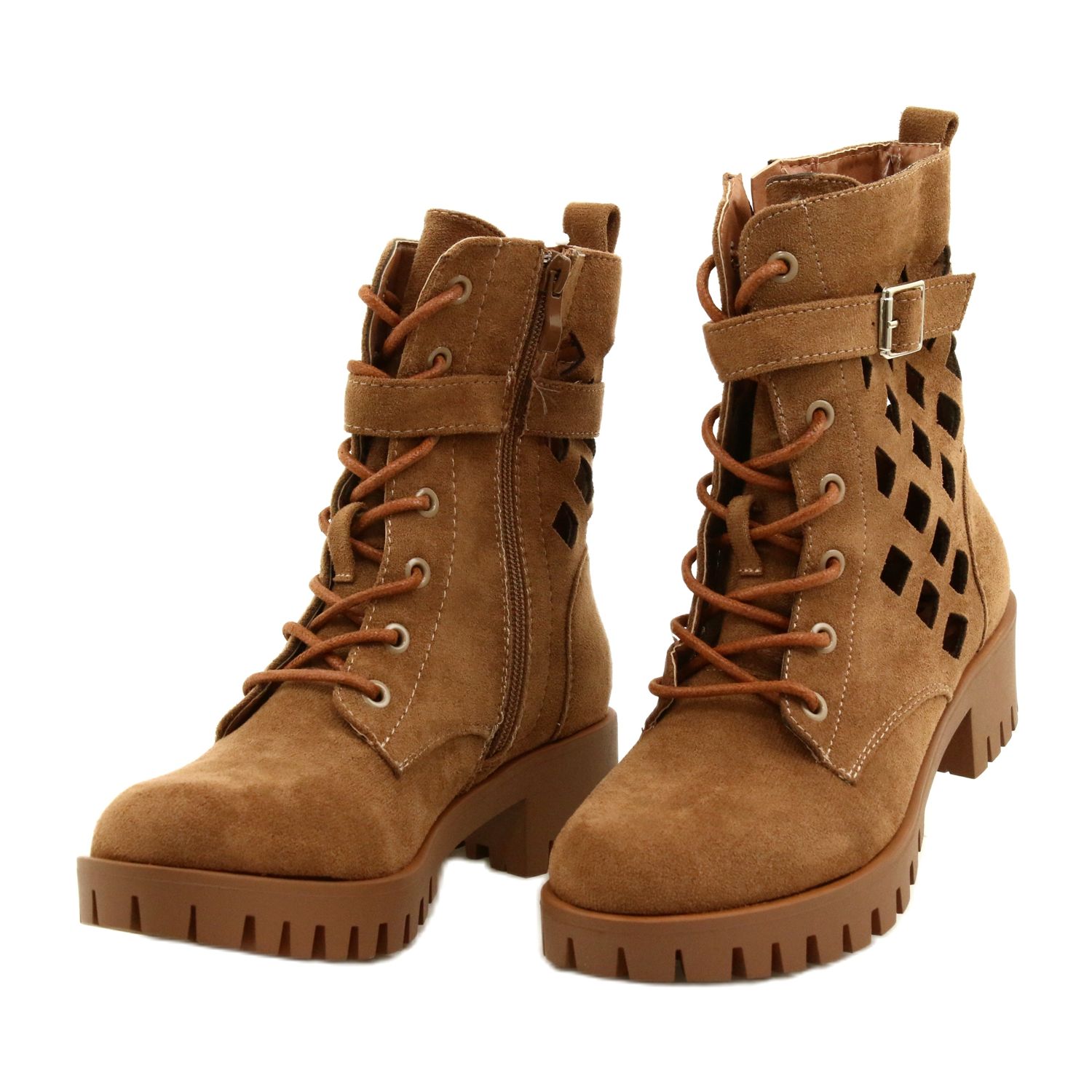 M.Daszyński Workery ażurowe wiązane MR1813-33A — beż-camel
