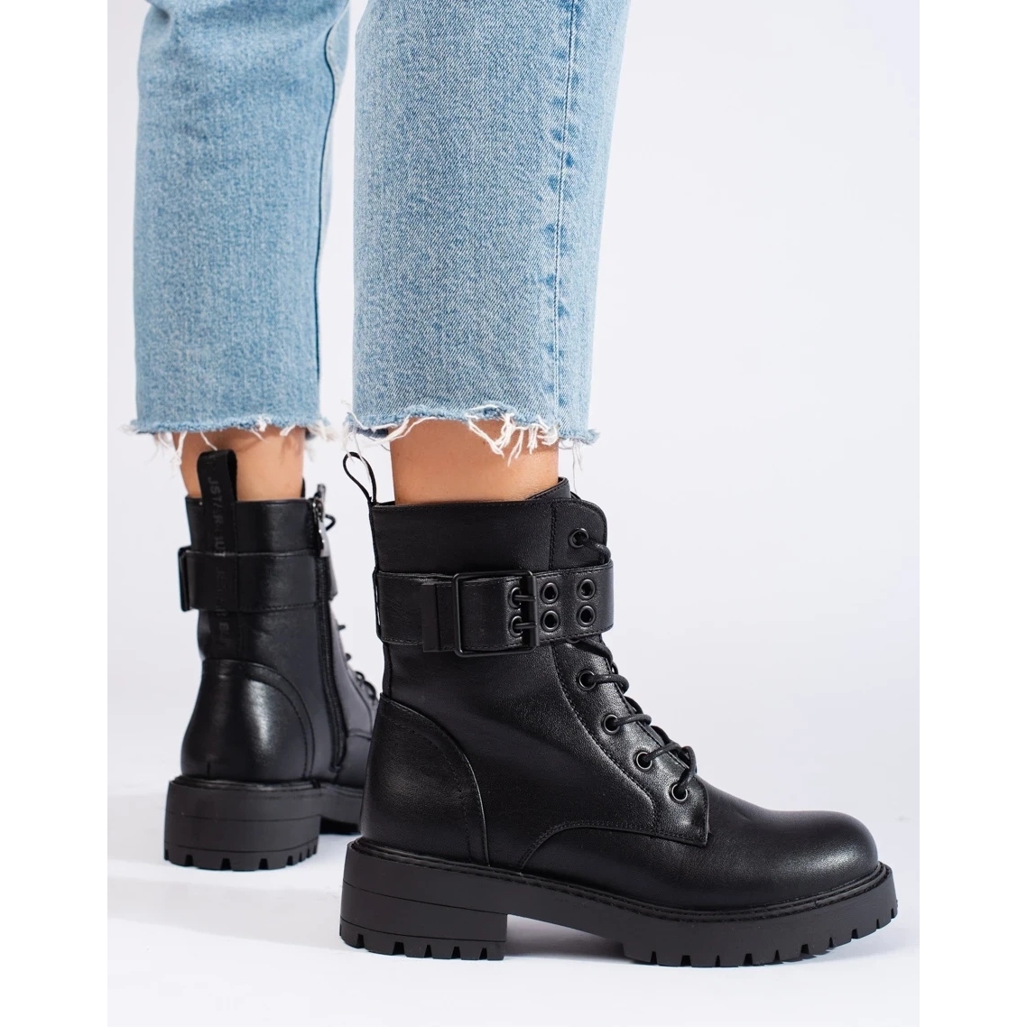 Szczegóły: Workery damskie sznurowane ze skóry ekologicznej czarne