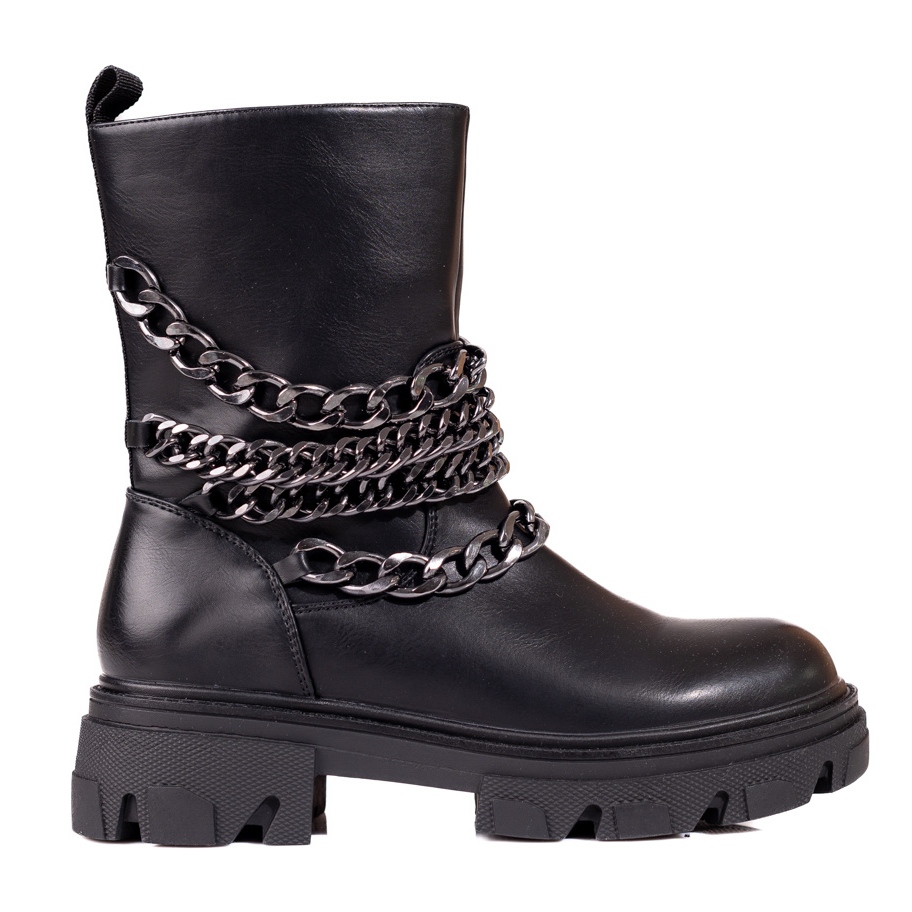 Szczegóły: Workery damskie z łańcuszkami czarne