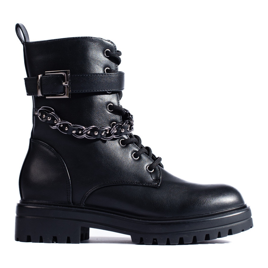 Workery damskie z łańcuszkiem — czarne