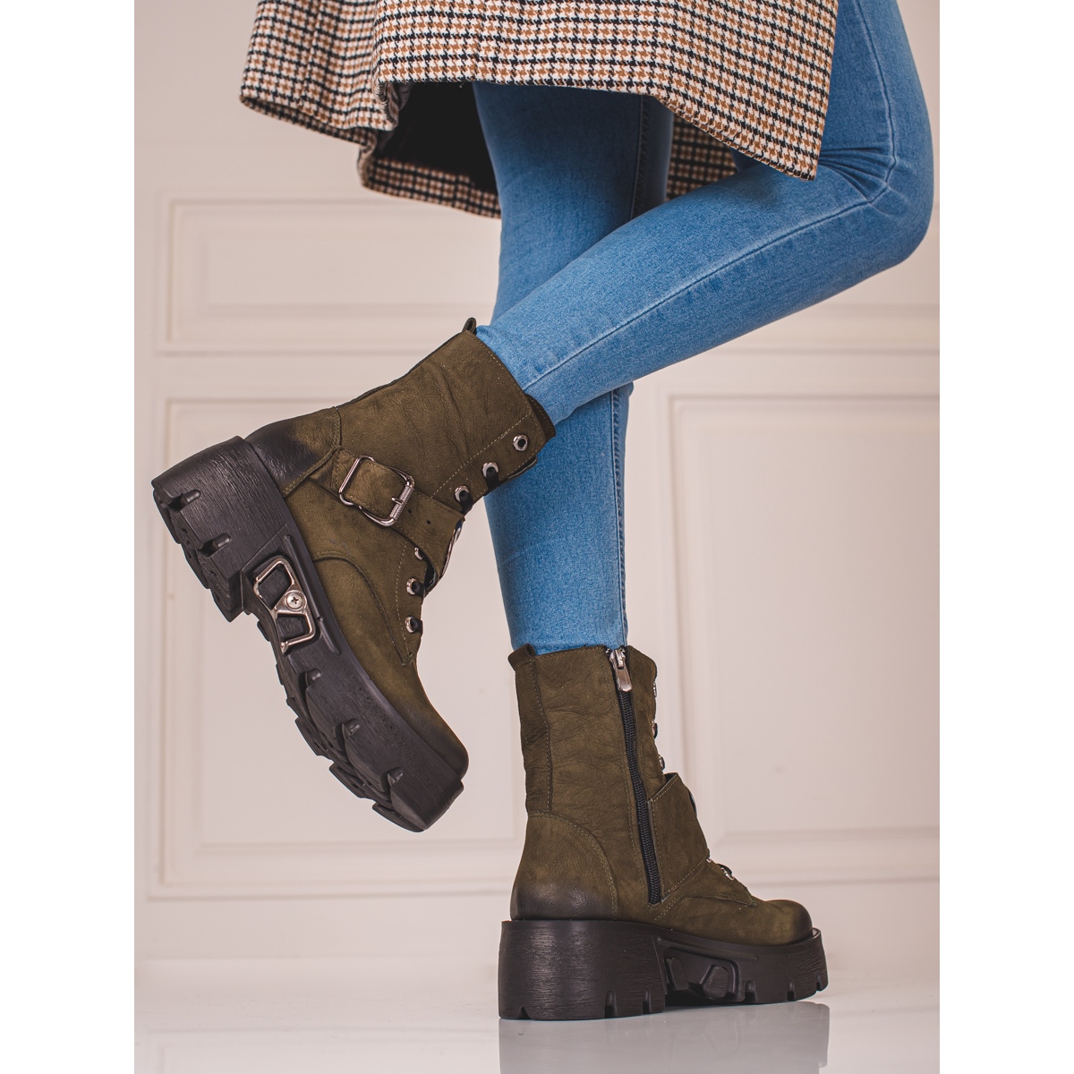 SHELOVET Workery damskie ze skóry naturalnej Shelovet zielone