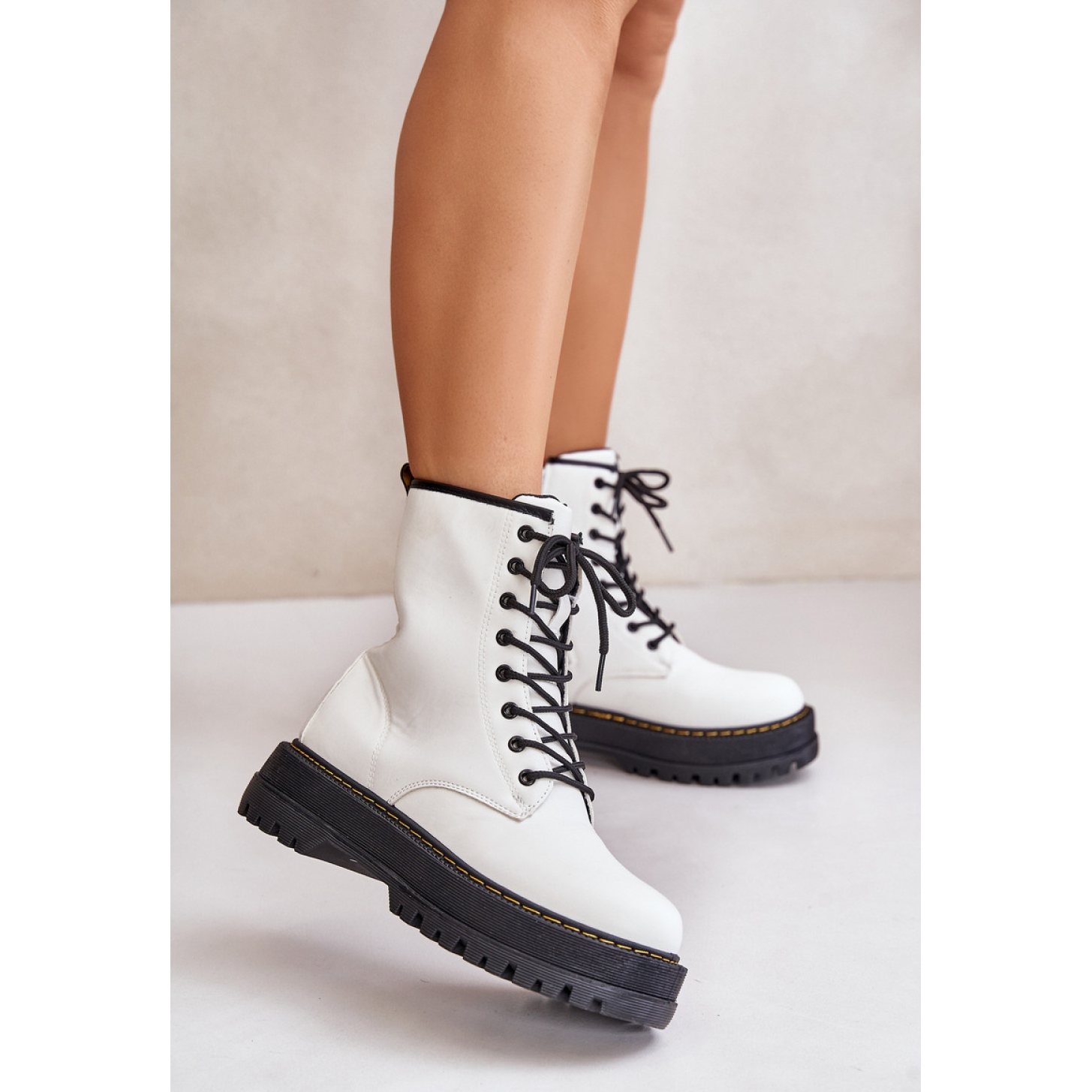 Botki damskie Workery Model Naleli 24BT26-7403 w kolorze białym od marki Step in style to doskonały wybór dla osób ceniących sobie zarówno modny wygląd, jak i komfort. Wykonane z wysokiej jakości skóry ekologicznej, łączą nowoczesny design z praktycznością. Dzięki suwakowi umieszczonemu z boku cholewki oraz sznurowaniu, zapewniają idealne dopasowanie do stopy, a ich usztywniany zapiętek dodatkowo zwiększa stabilność.