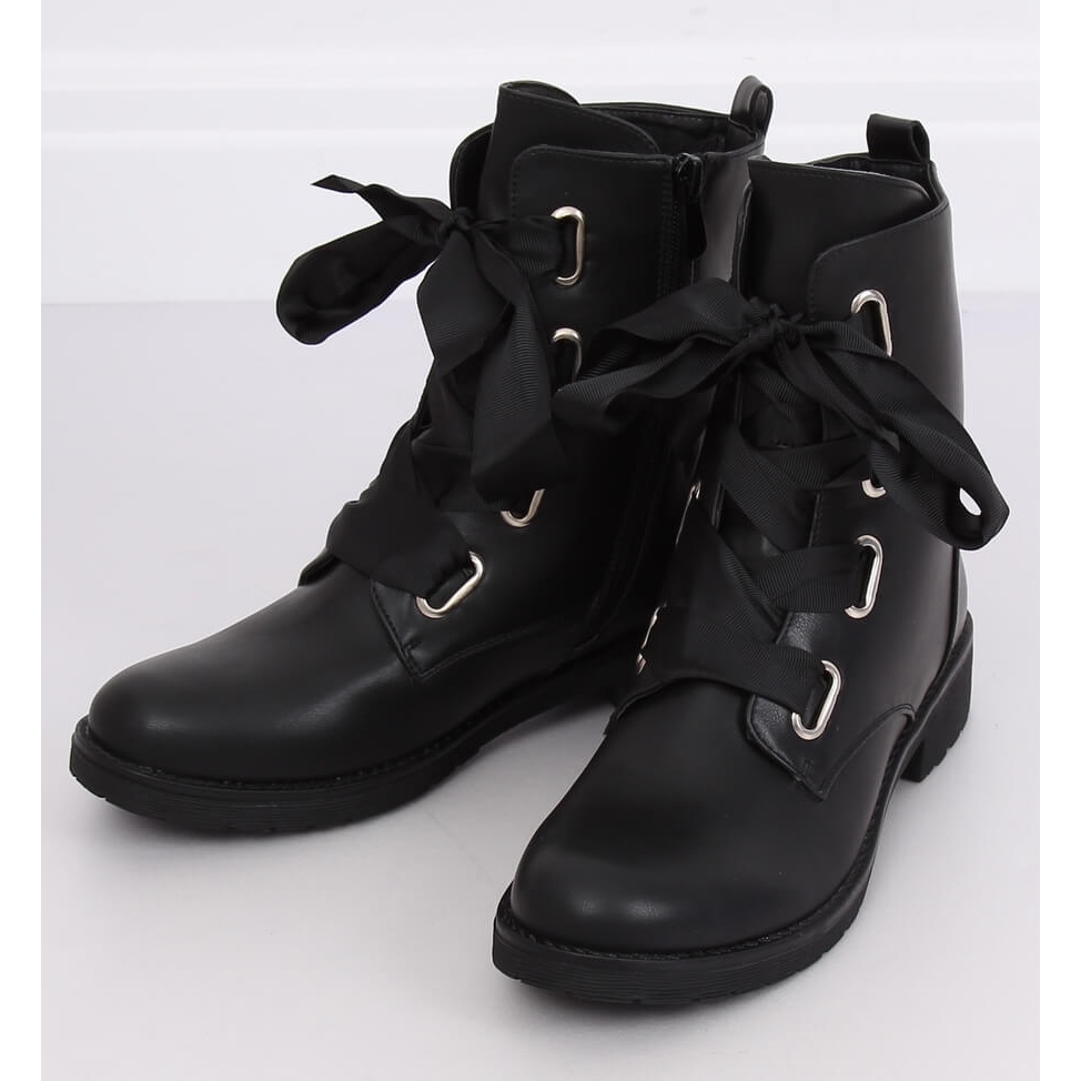 Szczegóły: Workery sznurowane tasiemką czarne 11606-97 Black