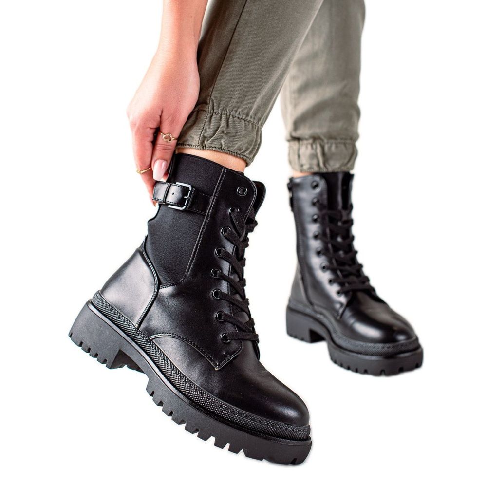 **Groto Gogo Workery Trapery Ze Sprzączką Czarne**
