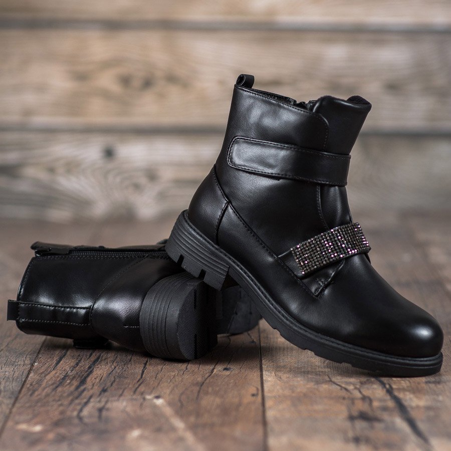 Przedstawiamy buty Evento Workery Z Kryształkami w kolorze czarnym – idealne połączenie rockowego stylu z elegancją. Te niezwykłe botki na niskim obcasie z pewnością przyciągną uwagę każdej pewnej siebie kobiety, która ceni sobie wyjątkowy design oraz komfort noszenia.