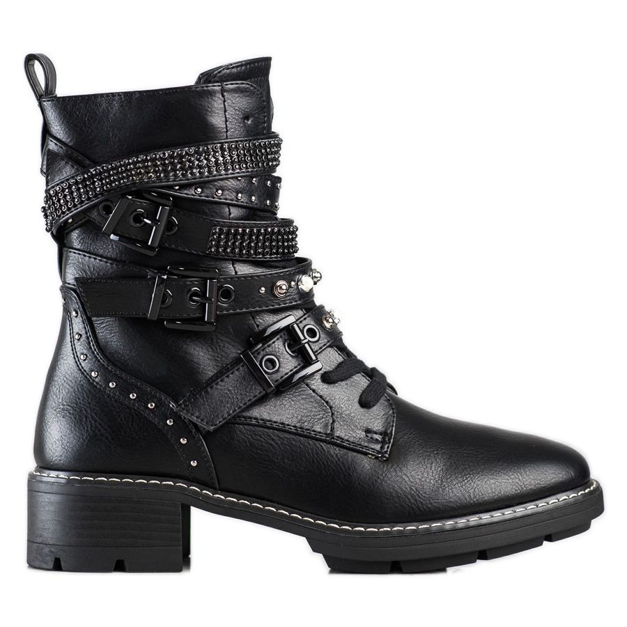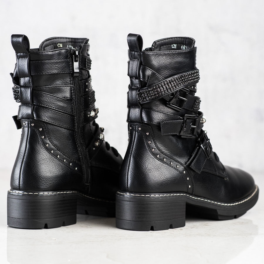 Szczegóły: Cm Paris Workery Z Ozdobnymi Paskami czarne