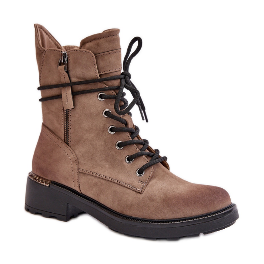 Szczegóły: Evento Workery Zamszowe Z Ozdobnym Suwakiem beżowy