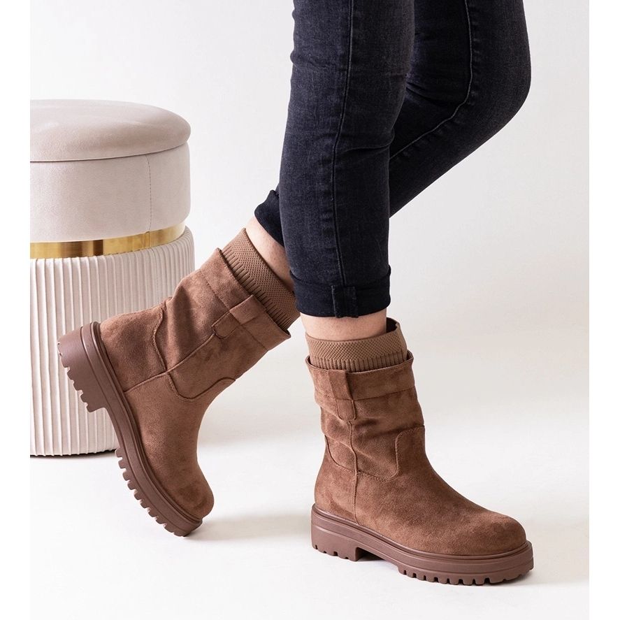 Inna marka Wsuwane brązowe botki ze skarpetą Ralia