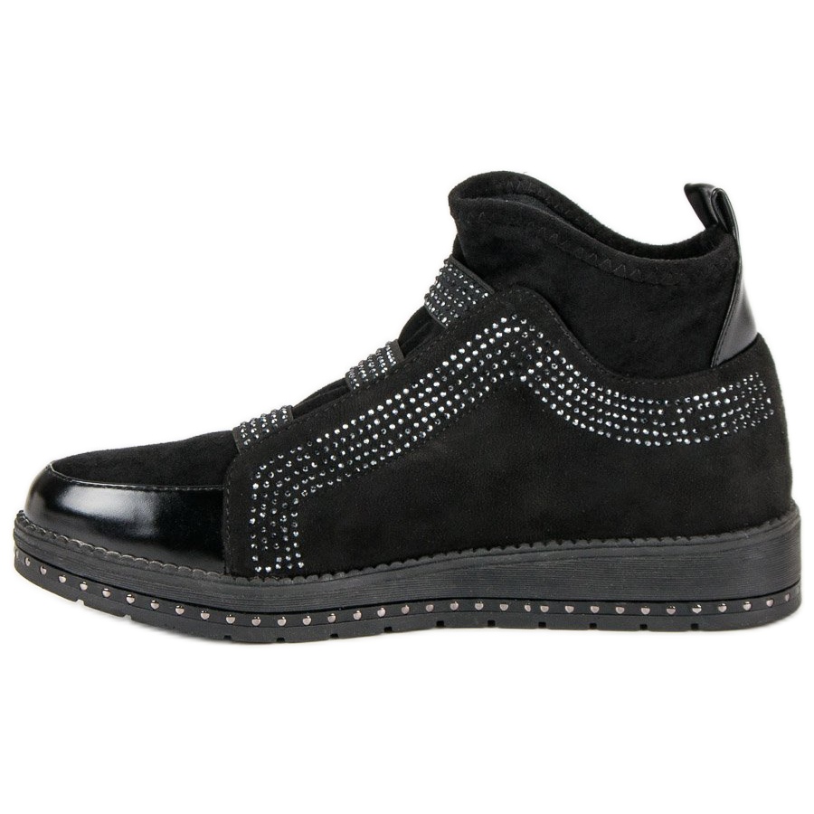 Niskie obcasy (2,5 cm) oraz zabudowany, usztywniony zapiętek gwarantują wygodę, a gumowa podeszwa z bieżnikiem zapewnia stabilność i pewność kroku. Sneakersy są wykonane z wysokiej jakości materiałów, co sprawia, że są idealne na każdą porę roku – od wiosny po zimę. Czarny kolor i minimalistyczny design sprawiają, że pasują do wielu stylizacji, od spodni jeansowych po zwiewne sukienki.