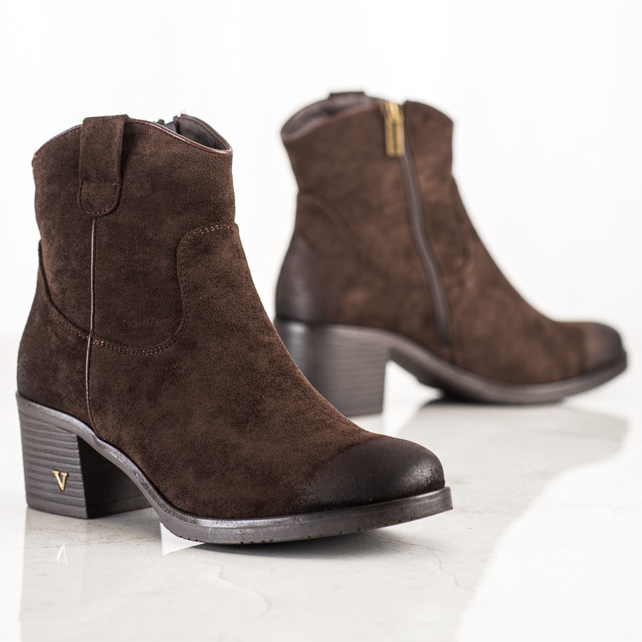 Szczegóły: Wygodne Botki Z Zamszu VINCEZA brązowe