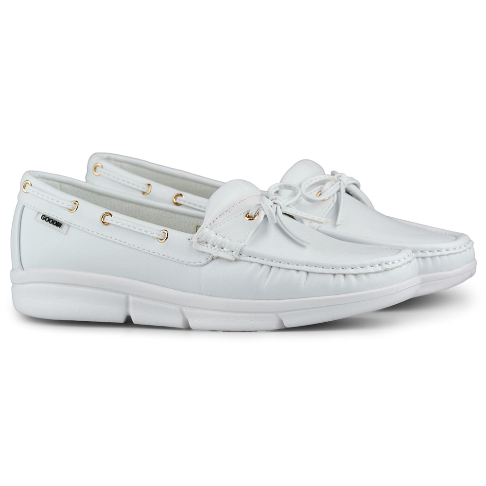 Szczegóły: Wygodne mokasyny damskie w kolorze białym komfortowe mokasyny damskie białe