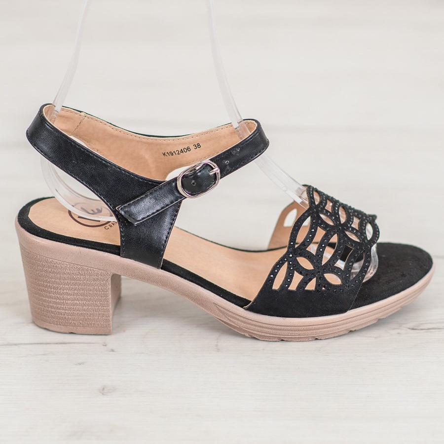 Kylie Wygodne Sandałki Na Grubym Słupku czarne