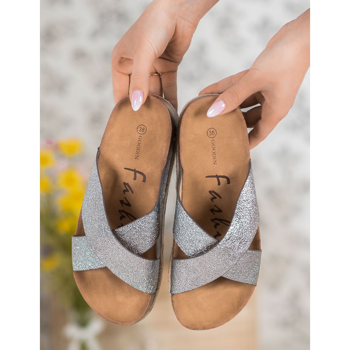 Goodin Goodin Wygodne Srebrne Klapki szare