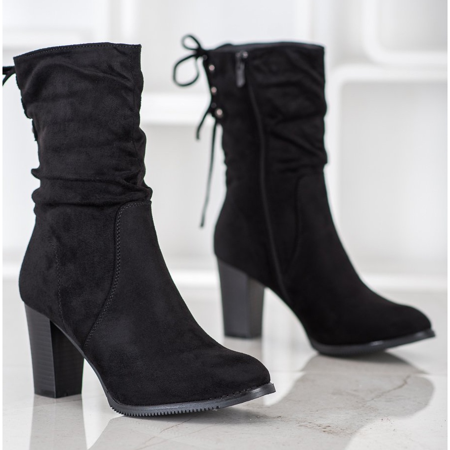 Ich uniwersalny czarny kolor sprawia, że świetnie komponują się zarówno z casualowymi, jak i eleganckimi stylizacjami – będą idealnym wyborem na codzienne wyjścia oraz na uroczystości. Dzięki sznurowanemu zapięciu i zamkowi, ich zakładanie i zdejmowanie jest szybkie i wygodne.