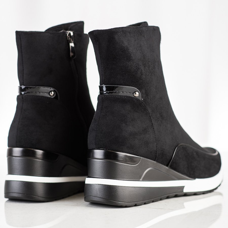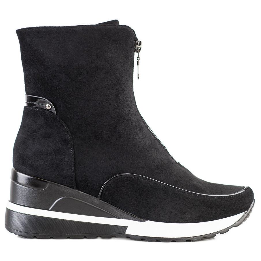 Odkryj elegancję i wygodę w Wysokich Czarnych Botkach VINCEZA, które łączą w sobie styl casualowy z codzienną funkcjonalnością. Te damskie botki to idealny wybór na chłodne dni sezonu jesień/zima. Wykonane z wysokiej jakości ekoskóry w imitacji zamszu, prezentują się niezwykle elegancko, a jednocześnie są przyjazne dla środowiska.