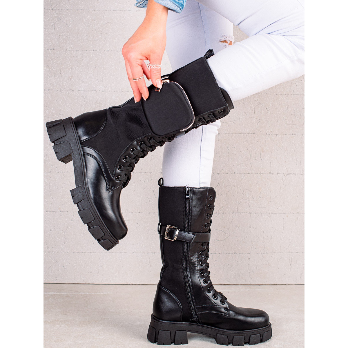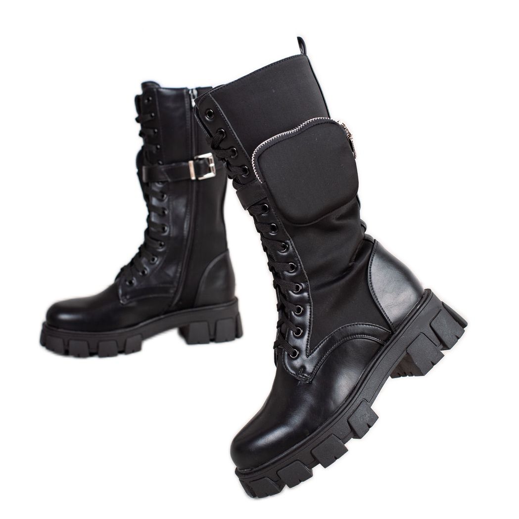 TRENDI TRENDI Wysokie Czarne Glany Z Kieszonką