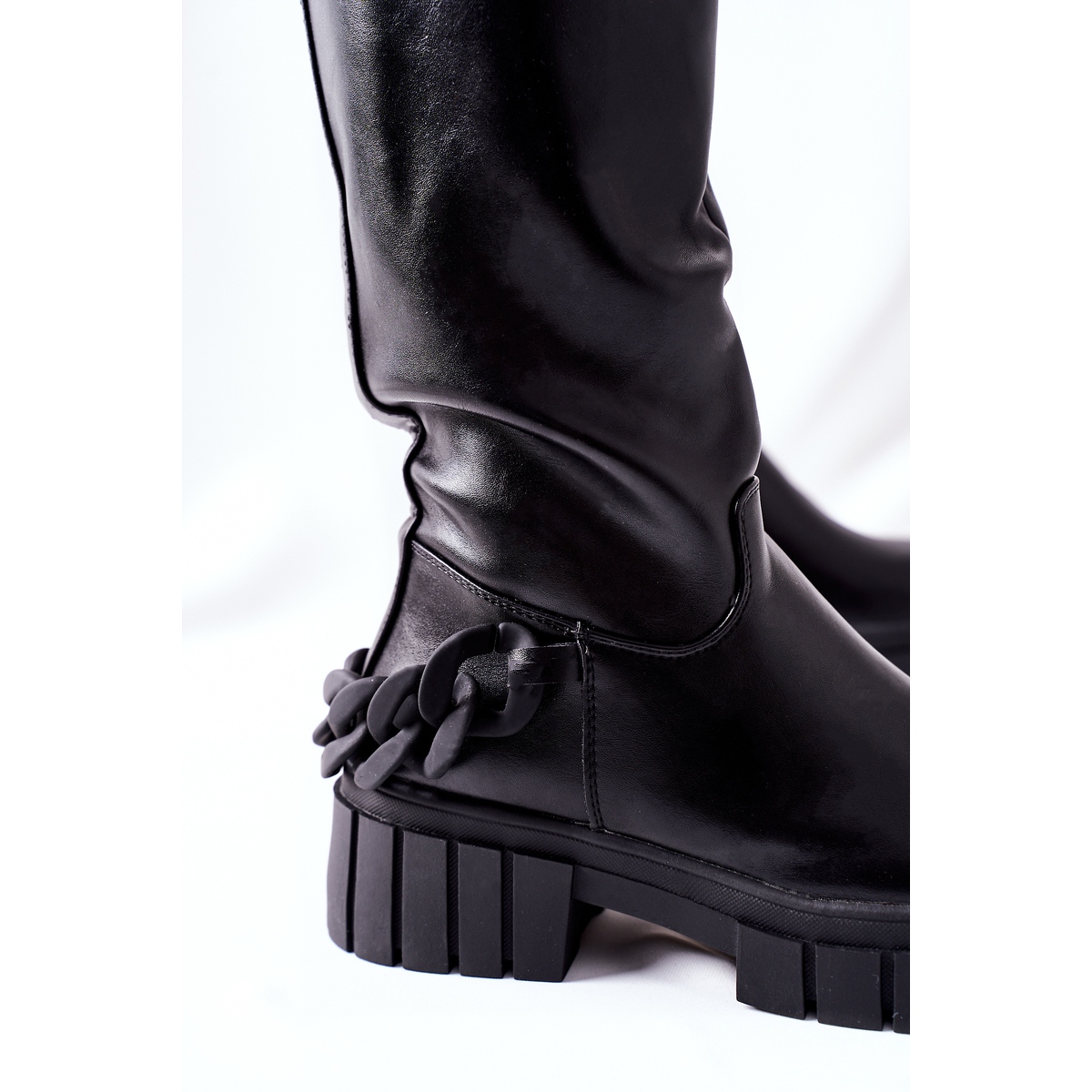 Inna marka Wysokie Czarne Kozaki z Łańcuchem Teardown