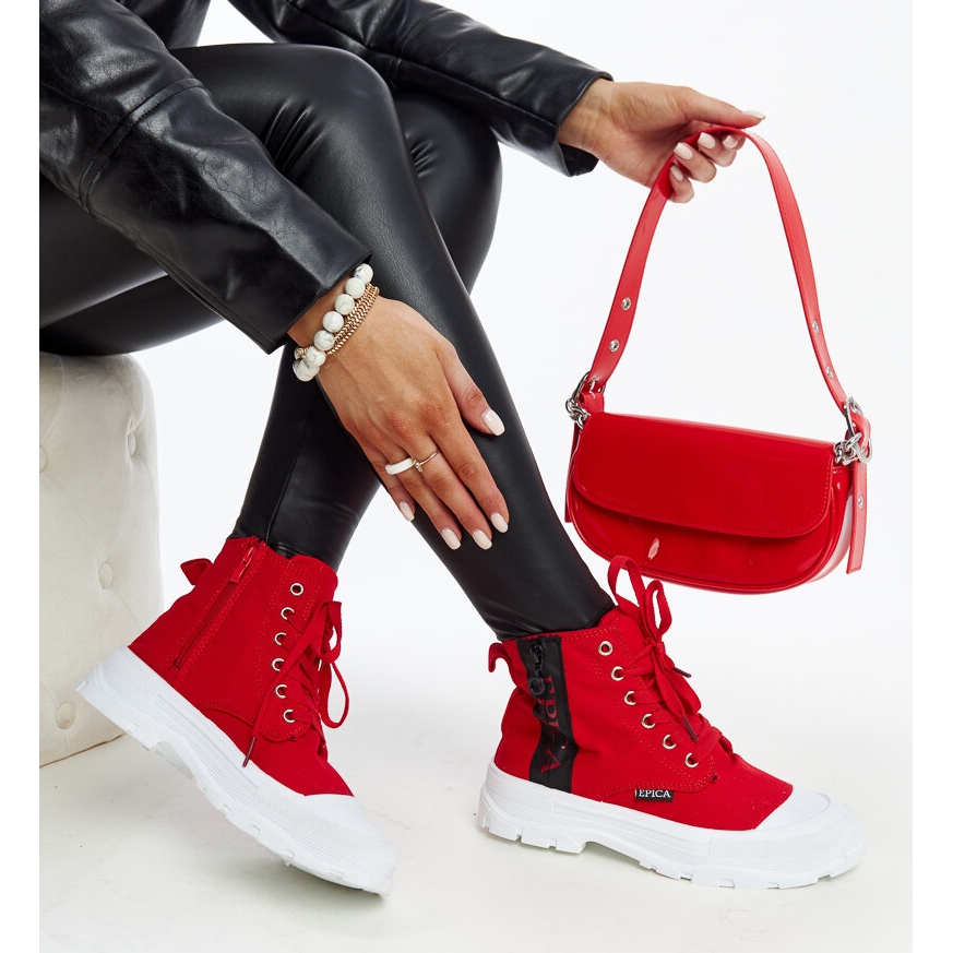 Wysokie czerwone trampki Yorda to doskonały wybór dla kobiet, które pragną wyróżniać się swoim stylem, jednocześnie gwarantując sobie wygodę na co dzień. Wykonane z wysokiej jakości gumy, te stylowe buty łączą nowoczesny design z praktycznymi rozwiązaniami. Okrągły nosek oraz zapięcie na zamek błyskawiczny, w połączeniu ze sznurowanymi detalami, zapewniają nie tylko modny wygląd, ale także wygodne dopasowanie.