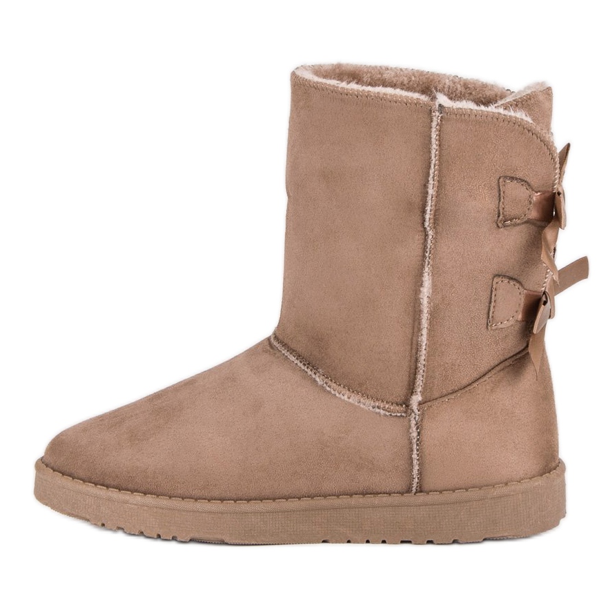 Mukluki wyróżniają się miękkim zapiętkiem oraz ocieplonym wnętrzem, co zapewnia ciepło i wygodę nawet w chłodniejsze dni. Dodatkowym atutem jest możliwość wywinięcia cholewki, co pozwala na różnorodne stylizacje. Ozdobna wstążka dodaje całości uroku i sprawia, że buty te są nie tylko praktyczne, ale także wyjątkowe.