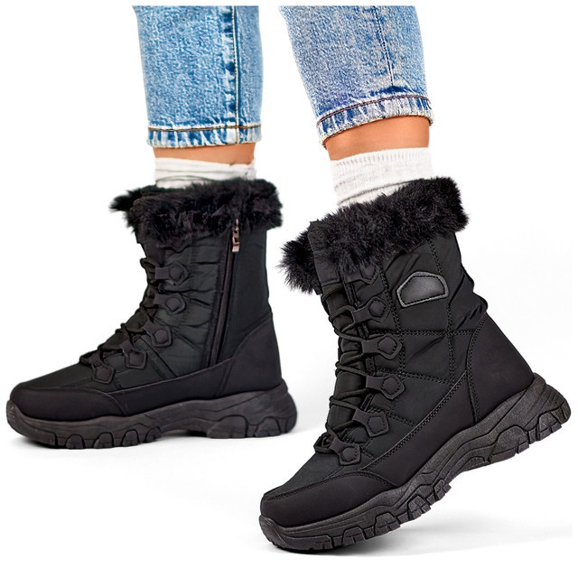 Szczegóły: Wysokie ocieplane śniegowce sportowe zimowe buty damske grubo ocieplane czarne