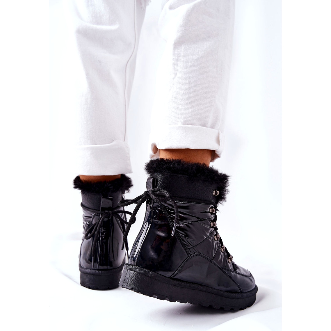 Zewnętrzna część buta powstała z materiału tekstylnego oraz lakierowanej eko skóry, co sprawia, że są nie tylko trwałe, ale również estetycznie atrakcyjne. Zapinane na praktyczny zamek, pozwalają na szybkie i wygodne zakładanie. Wnętrze butów wyłożone jest ciepłym futerkiem o dłuższym włosiu, które zapewnia przyjemne uczucie otulenia i komfort termiczny nawet w najchłodniejsze dni.