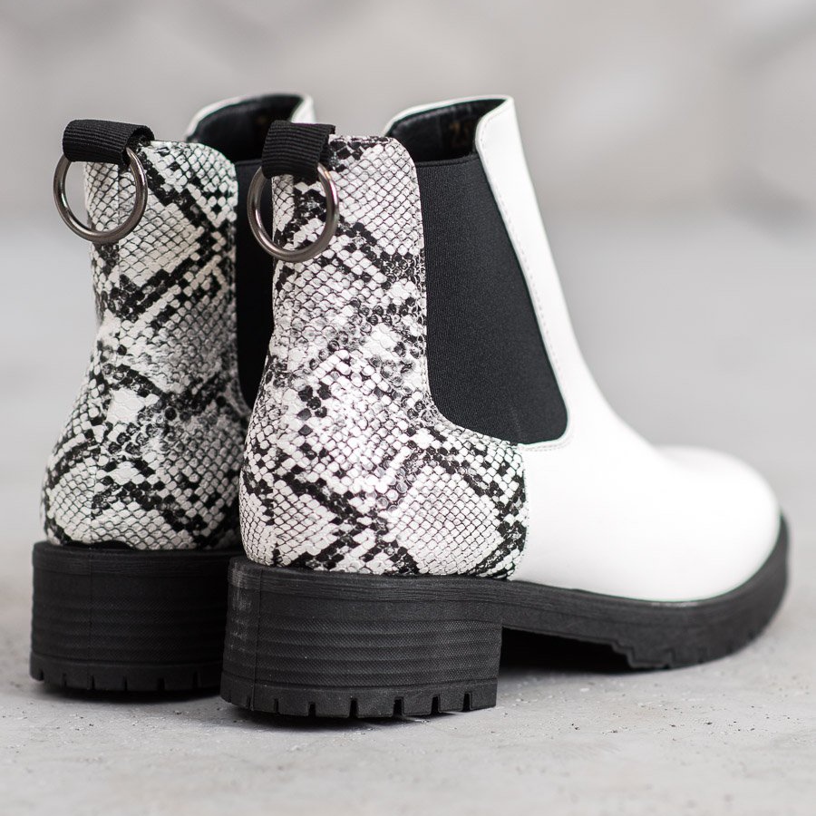 Szczegóły: Erino Wysokie Sztyblety Snake Print białe