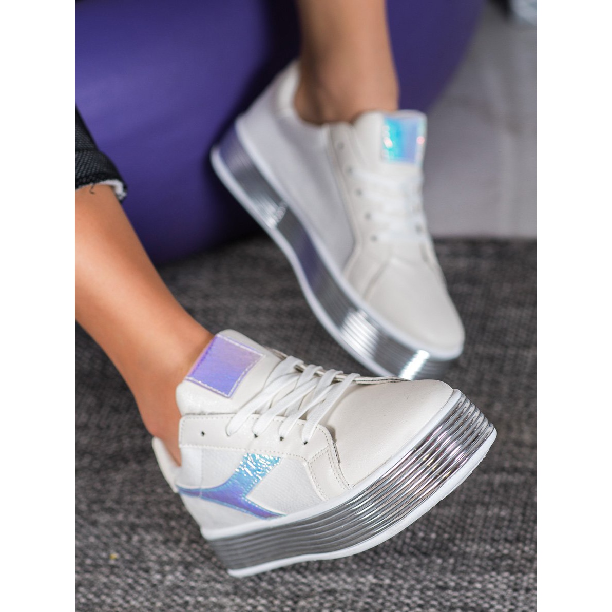 Damskie tenisówki Ideal Shoes X-9758w to idealny wybór dla kobiet ceniących sobie miejską elegancję oraz wygodę na co dzień. Te białe buty z jasnoniebieskimi ozdobnymi wstawkami przy kostkach stanowią doskonałe połączenie nowoczesnego designu z funkcjonalnością.