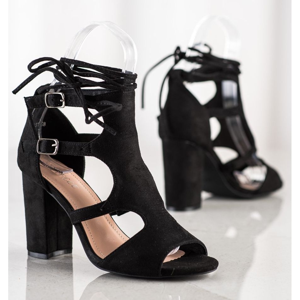 Bestelle Bestelle Zabudowane Sandały Z Wiazaniem czarne