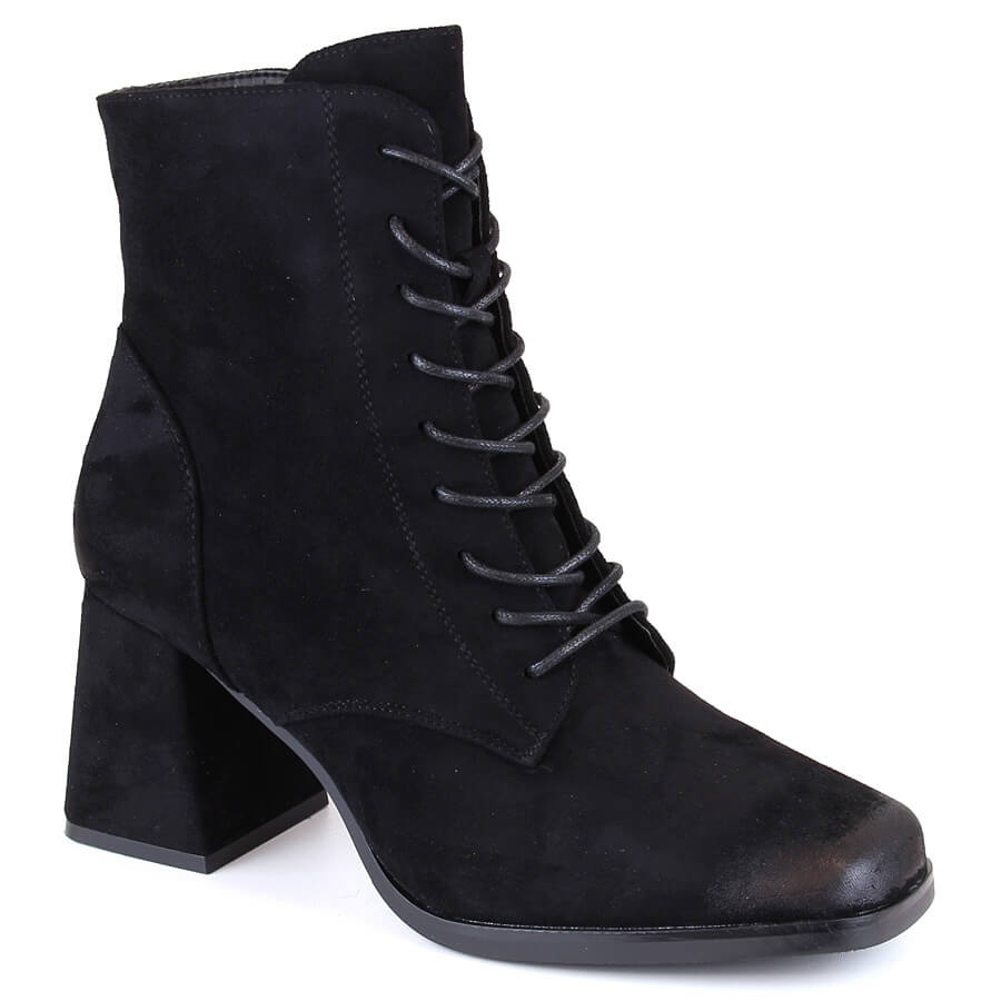 Potocki Zamszowe botki damskie na słupku sznurowane i na suwak czarne Potocki SZ12185