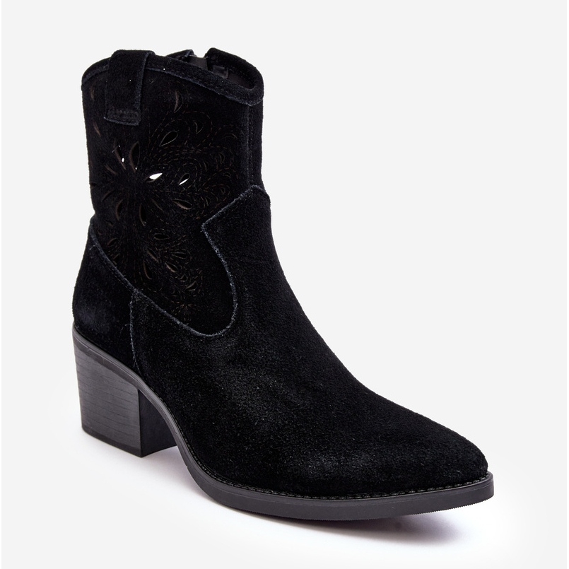 S.Barski Zamszowe Botki Kowbojki Ażurowe D&A SN622-20 — Czarne