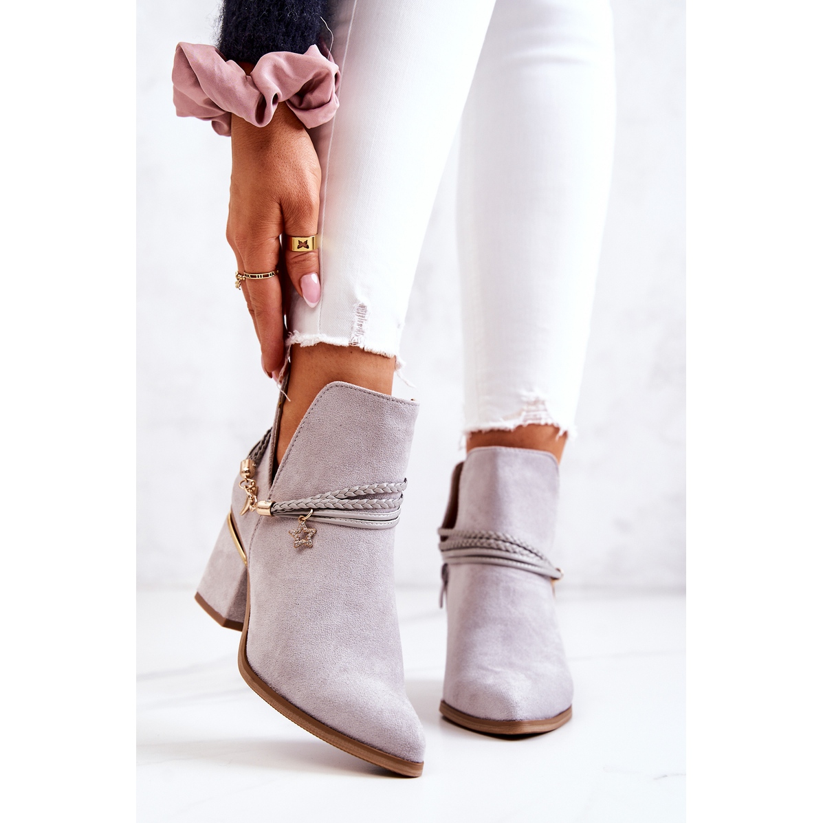 Szczegóły: PS1 Zamszowe Botki Kowbojki Z Paskami Szare Inessa