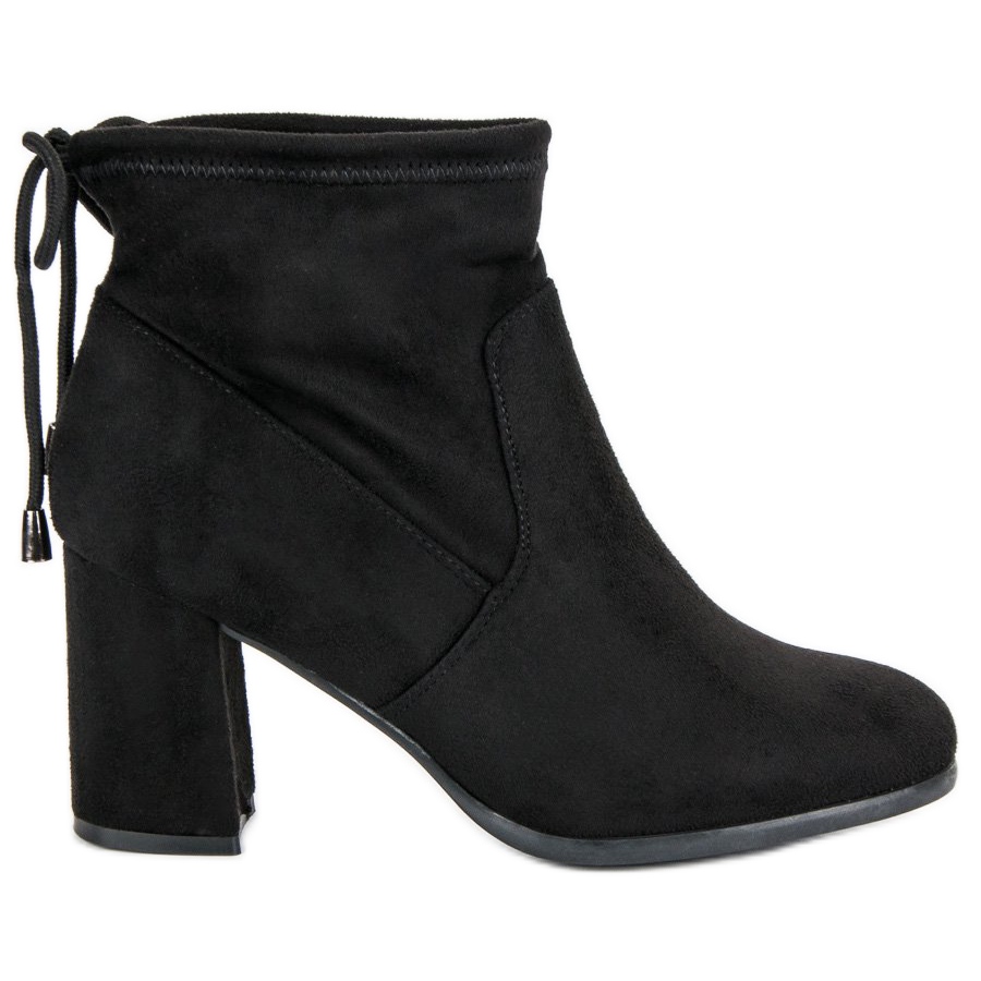 Oto zamszowe botki na obcasie w eleganckim czarnym kolorze, które zachwycą każdą kobietę. Wykonane z najwyższej jakości skóry ekologicznej, łączą w sobie styl i wygodę. Dzięki uniwersalnemu charakterowi, te botki będą idealnym dopełnieniem zarówno codziennych, jak i eleganckich stylizacji.
