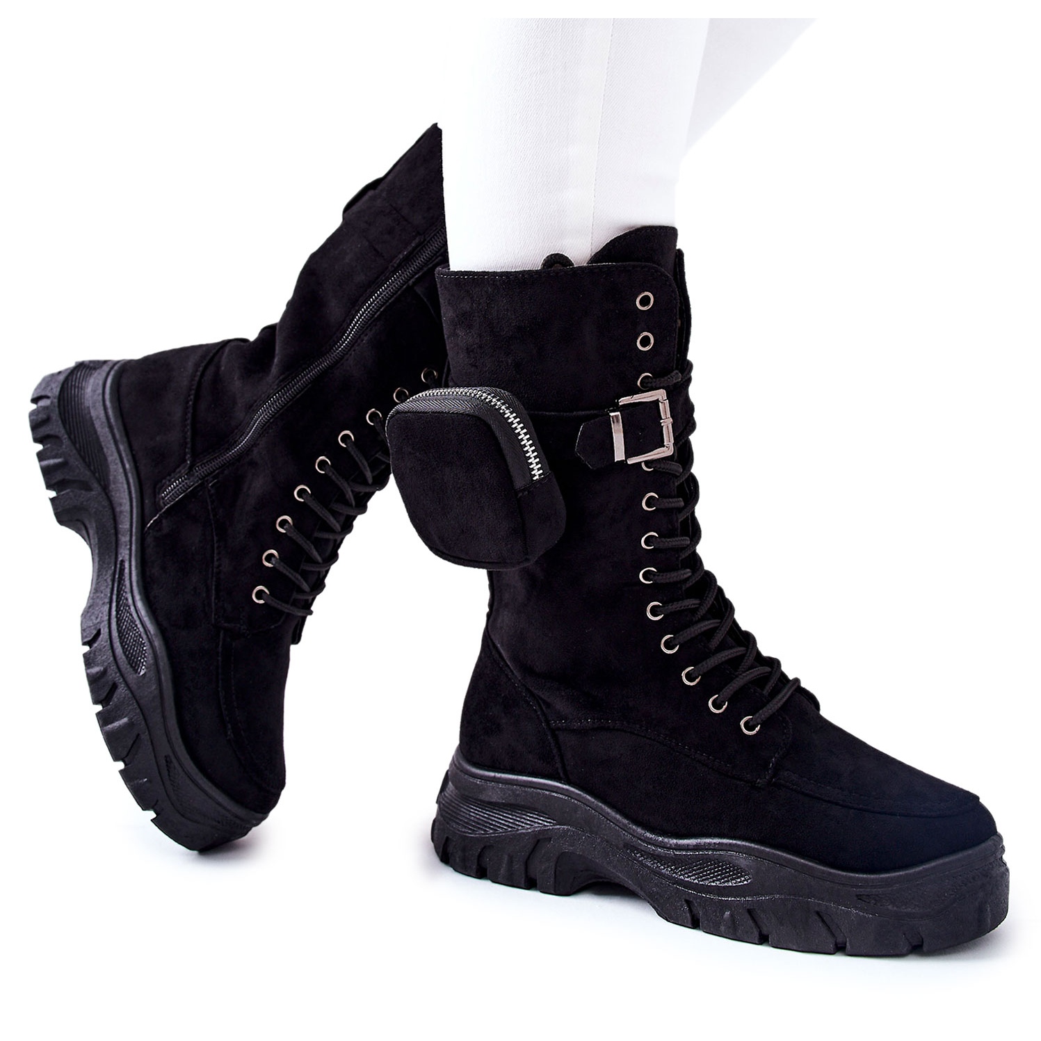 Inna marka Zamszowe Botki Na Platformie Z Nerką Czarne Issanti