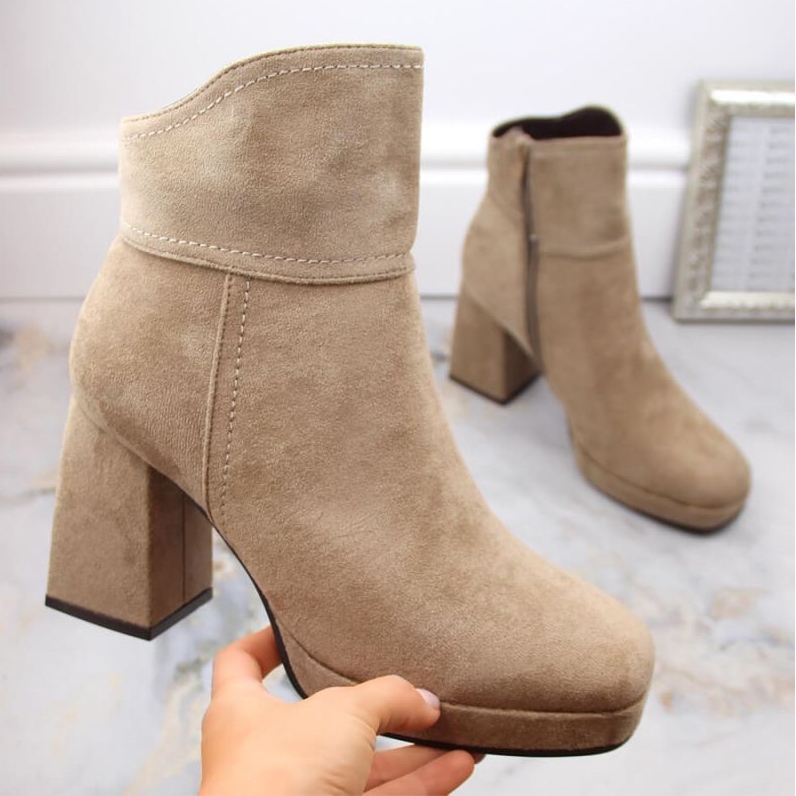 Szczegóły: Zamszowe botki na słupku i platformie ocieplane M.Daszyński W SAN24B beżowe