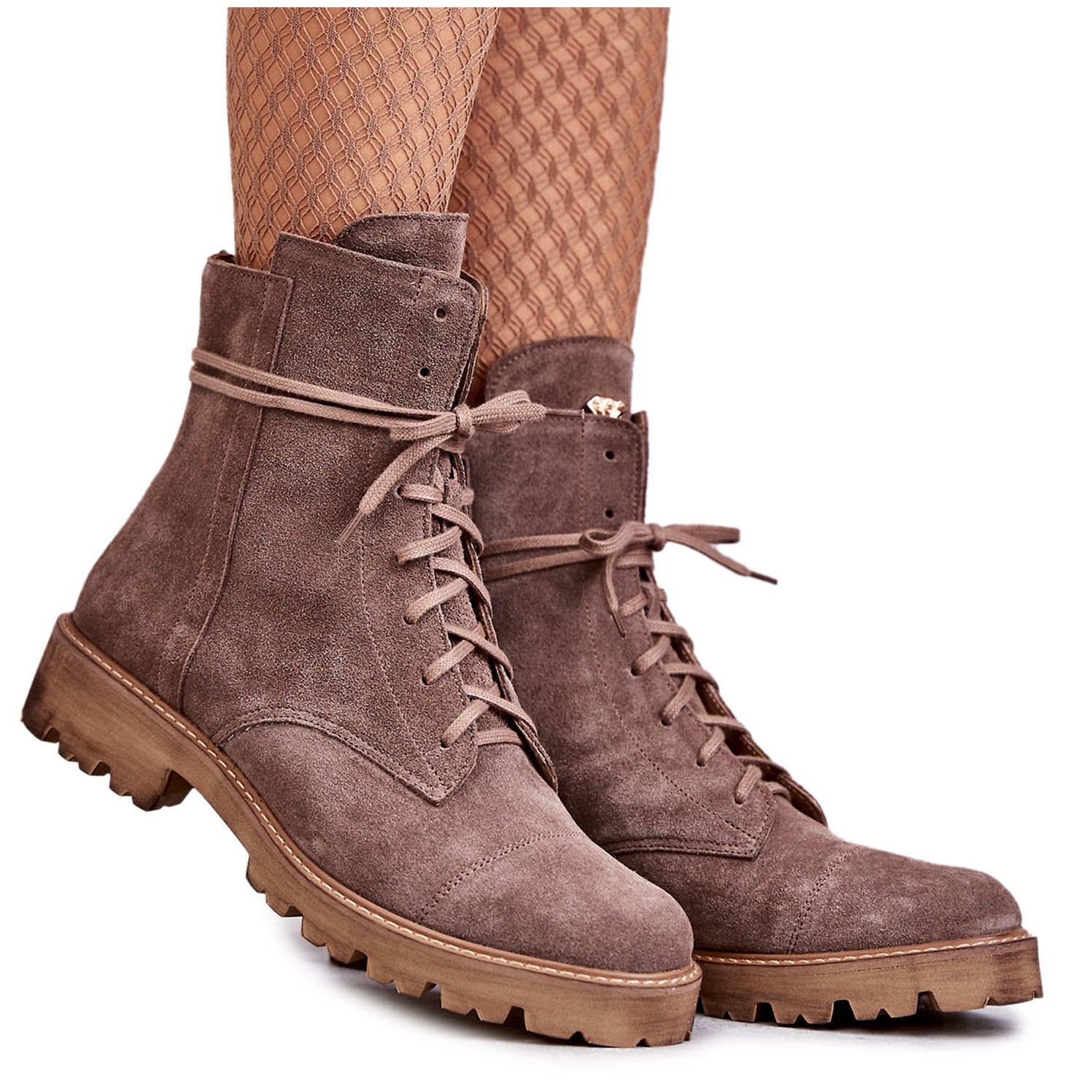 Szczegóły: Zamszowe Botki Na Suwak Nicole 2754 Brązowe