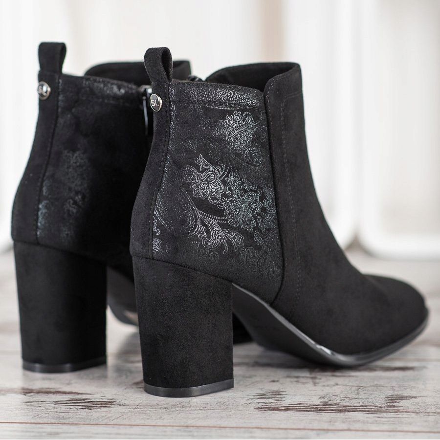 Materiał zewnętrzny z imitacji zamszu w połączeniu z gładką, syntetyczną podeszwą sprawiają, że botki prezentują się niezwykle elegancko, a ich minimalistyczny design sprawia, że będą pasować do wielu różnych stylizacji. Obuwie jest dostępne w klasycznym czarnym kolorze, co czyni je uniwersalnym wyborem na wiele okazji.