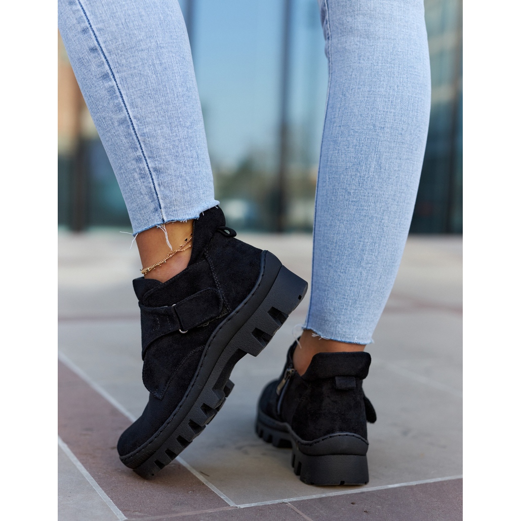 S.Barski S.Barski Zamszowe Botki Trapery Na Suwak Czarne Remgate