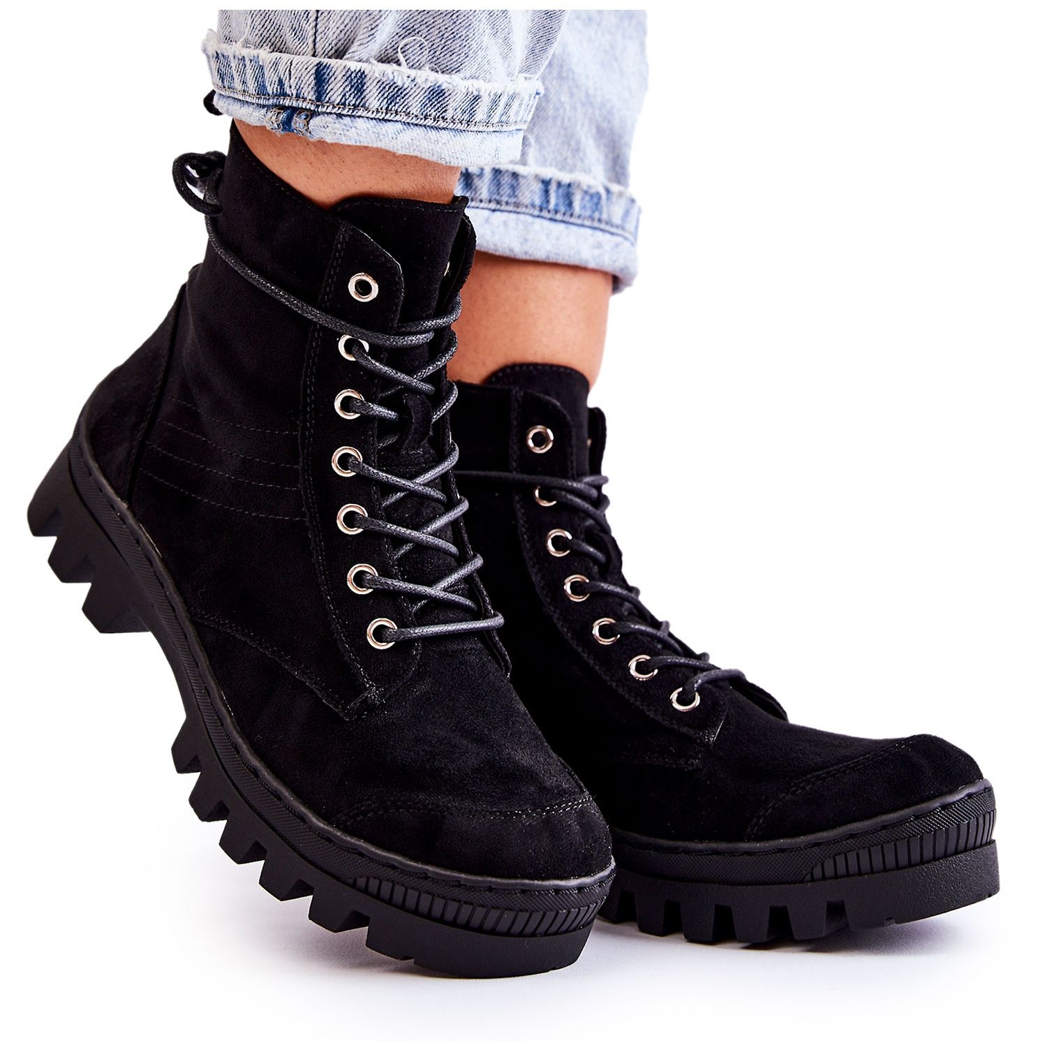 - Model: Zamszowe Botki Trapery Z Przeszyciami