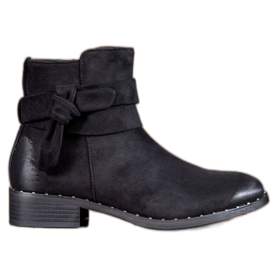 S. BARSKI S. BARSKI Zamszowe Botki Z Kokardą czarne