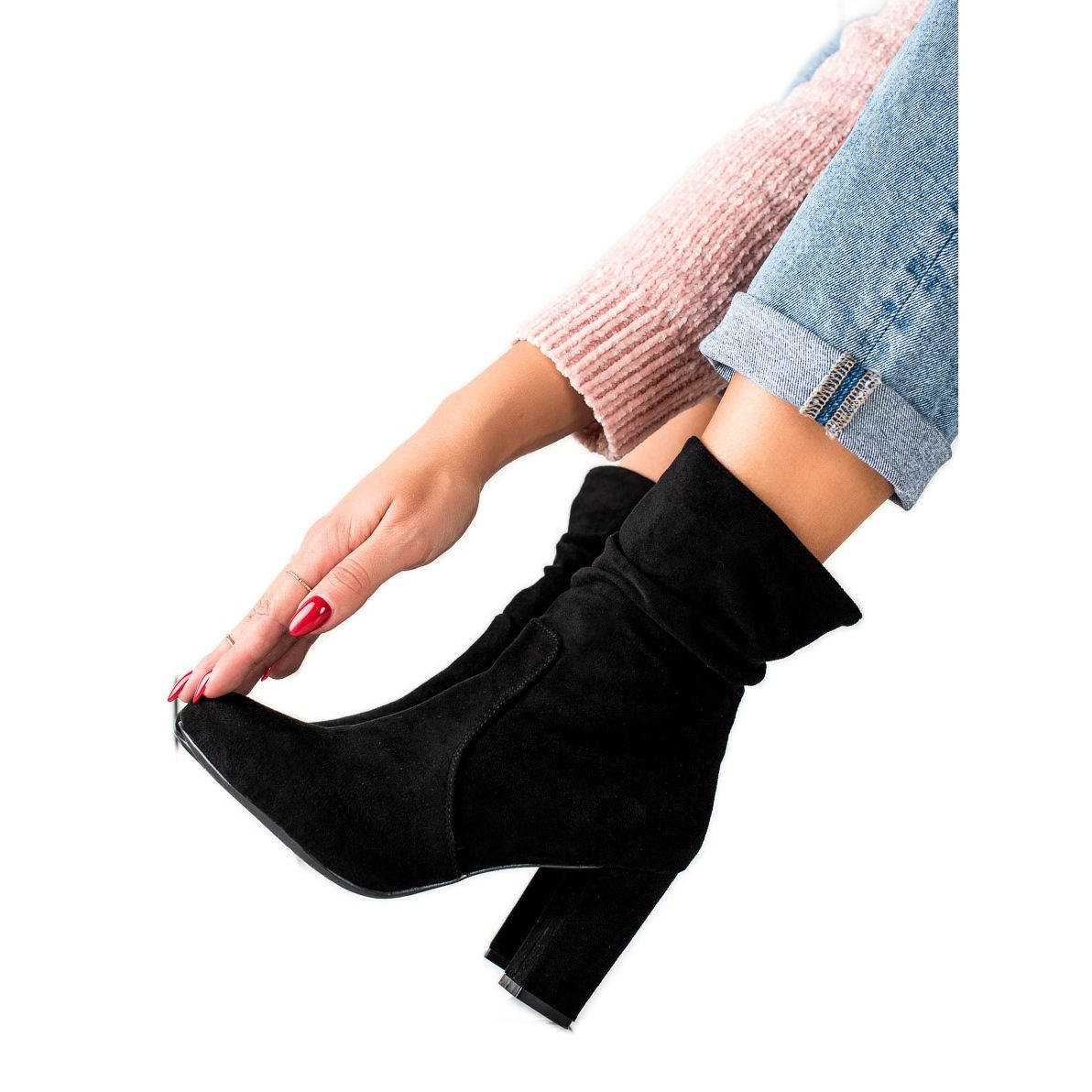 Szczegóły: TRENDI Zamszowe Botki Z Marszczoną Cholewką czarne