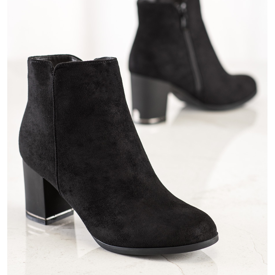 Janessa Janessa Zamszowe Botki Z Matowym Obcasem czarne