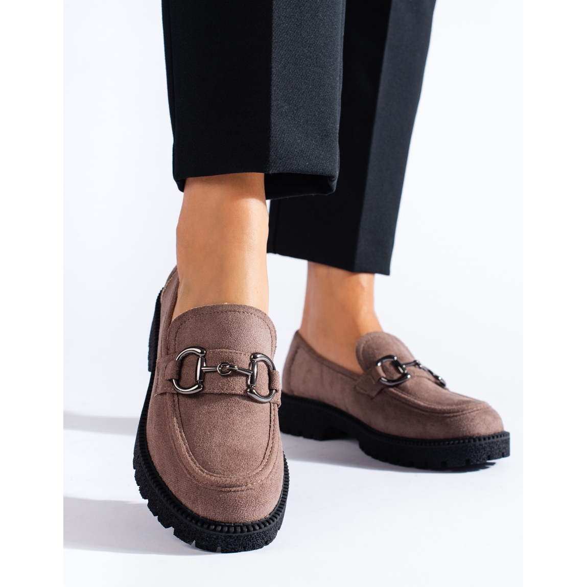 - Model: Zamszowe ciemnobeżowe mokasyny lordsy