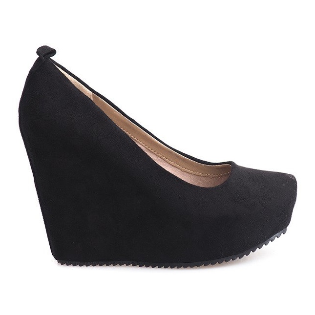 Inna marka Zamszowe Czólenka Na Koturnie 066 Czarny czarne