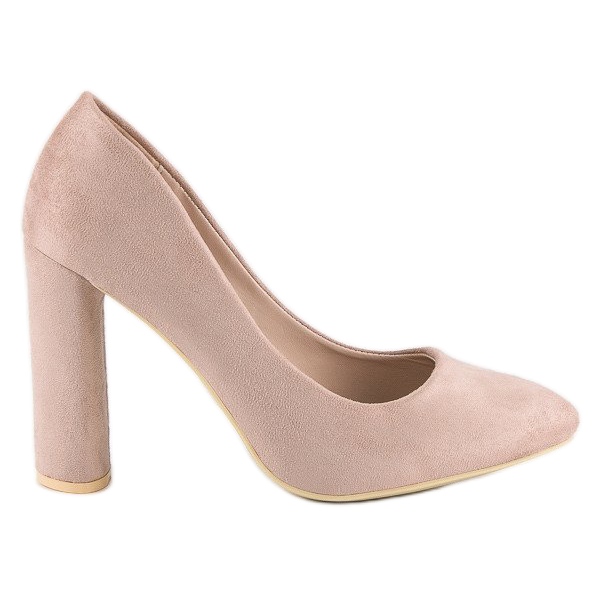 Szczegóły: Zamszowe czółenka na słupku brązowe